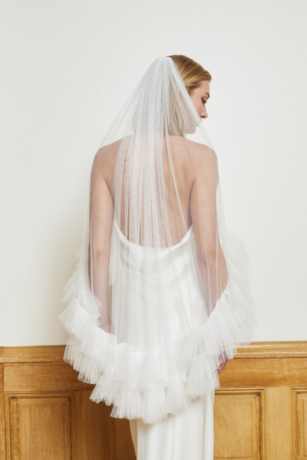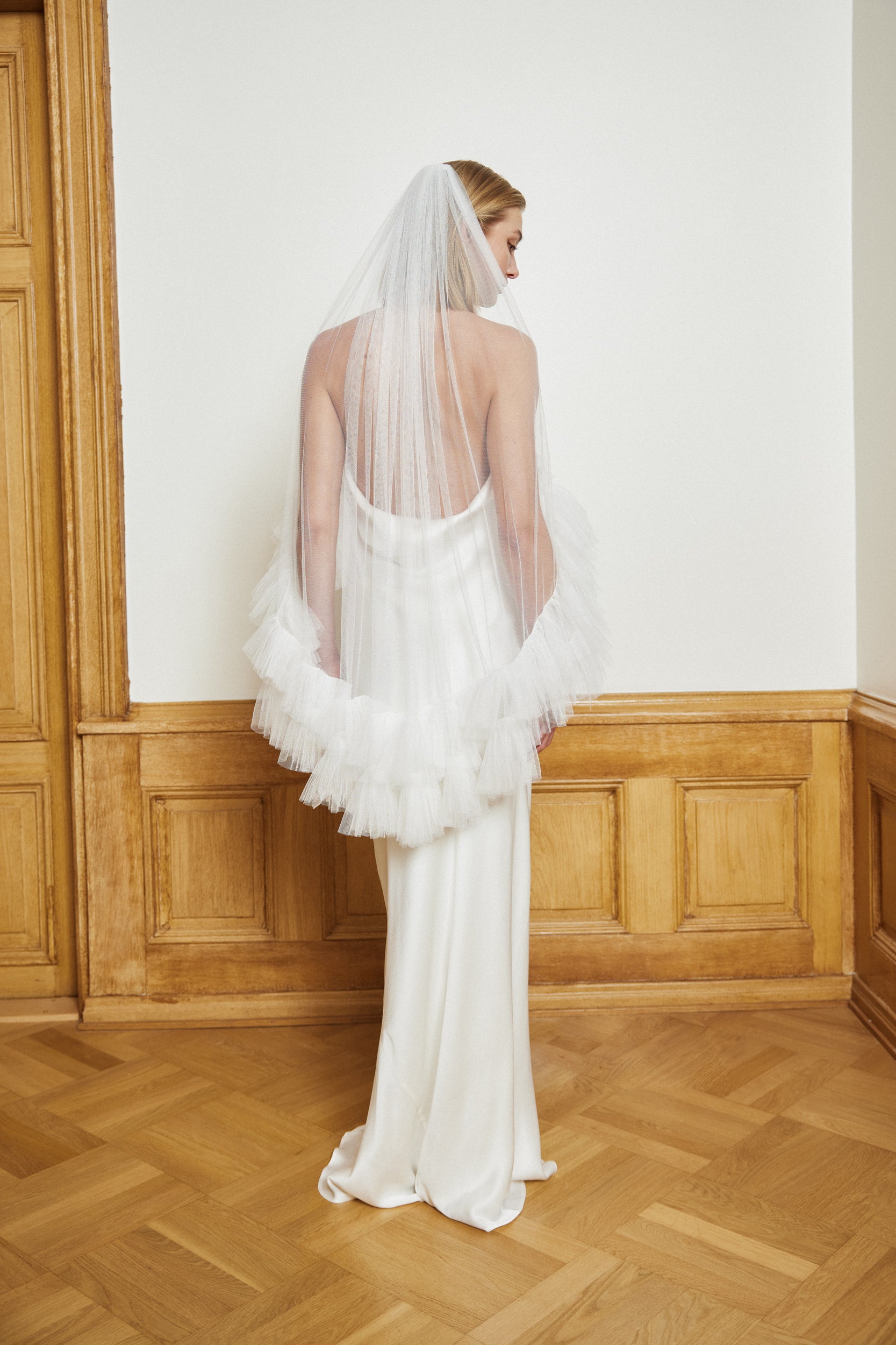 - Tulle veil with voluminous edge