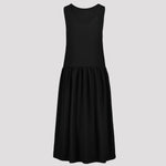 This flowy matte satin dress is an effortless addition to your vacation wardrobe. Designed with a clean round neckline and a sleeveless silhouette, it drapes beautifully to an elegant ankle length. The unlined construction keeps the dress lightweight and comfortable —perfect for warm days and relaxed summer evenings.