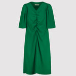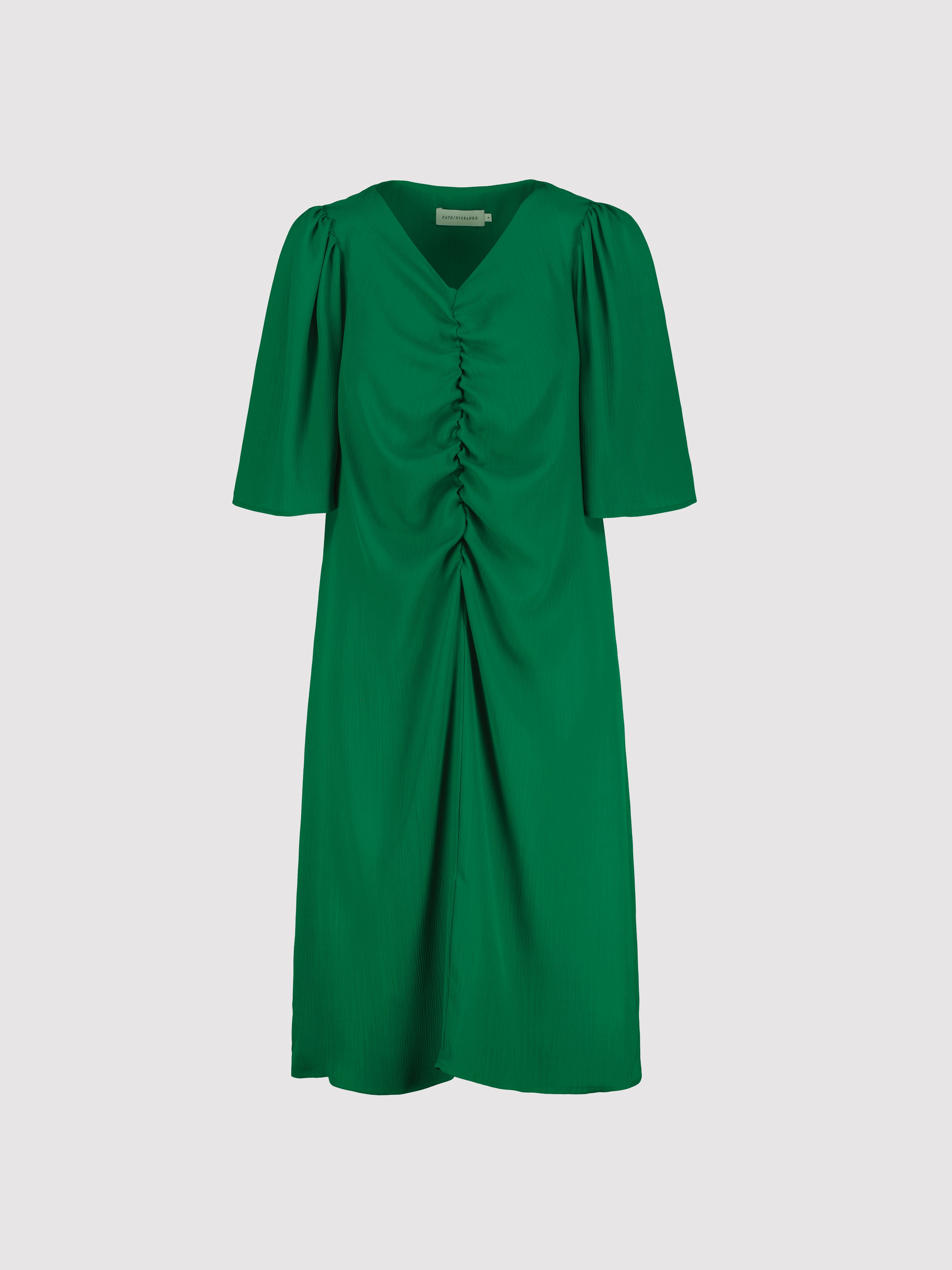 Introducing the USMA Dress — a playful piece that seamlessly blends structure with fluidity. Crafted from lightweight structured satin, this dress features a refined silhouette enhanced by strategic gather detailing at the front, creating subtle dimension and movement. The flattering V-neckline draws the eye upward, while voluminous sleeves add contemporary elegance without compromising comfort. A fully lined bodice ensures a smooth, polished finish against the skin.
