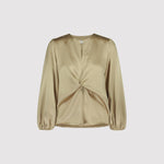 • A satin blouse with a knot detail at the front