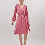 EMILY Dress is crafted from high-quality lightweight satin, offering luxurious and comfortable feel. The long sleeves feature elasticated cuffs that provide flexibility and ease of movement. The dress also has an elastic waistband that creates a flattering silhouette. The bodice is thoughtfully lined for added coverage and comfort. You'll love the look and feel of this dress, making it a wardrobe staple for many occasions.