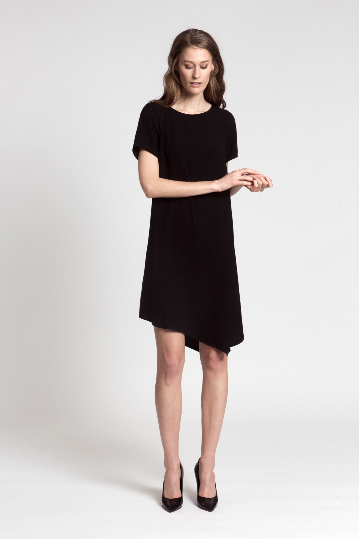 A versatile and stylish choice for your summer wardrobe. The VIVIAN DRESS is designed with an asymmetric hemline and short sleeves for effortless style. The pull-on style and lack of lining make it easy and comfortable to wear all day long.